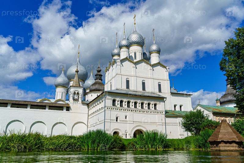 Ростов, Россия. Храм Воскресения Христова в Кремле. Пруд. Ростовский Кремль