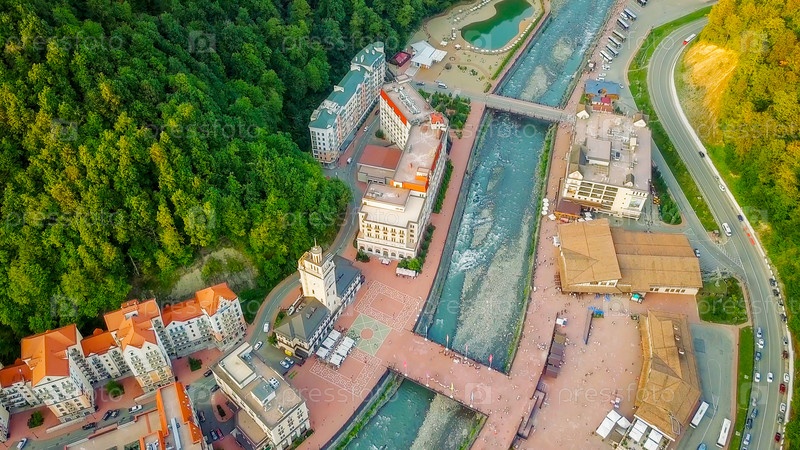 Вид с воздуха. Роза Хутор, Красная Поляна. Сочи, Россия