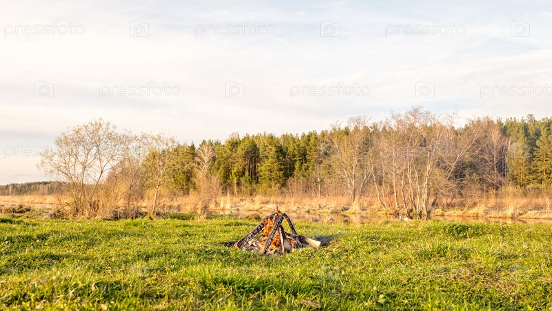 Костер в поле у реки