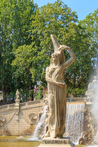 Турин, Италия. Скульптура - декабрь. Фонтан "12 месяцев". является одним из самых значительных архитектурных произведений парка Валентино. Создано Карло Чеппи (1829 - 1921)
