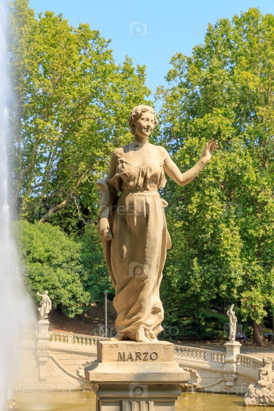 Турин, Италия. Скульптура - МАРТ. Фонтан "12 месяцев". является одним из самых значительных архитектурных произведений парка Валентино. Создано Карло Чеппи (1829 - 1921)