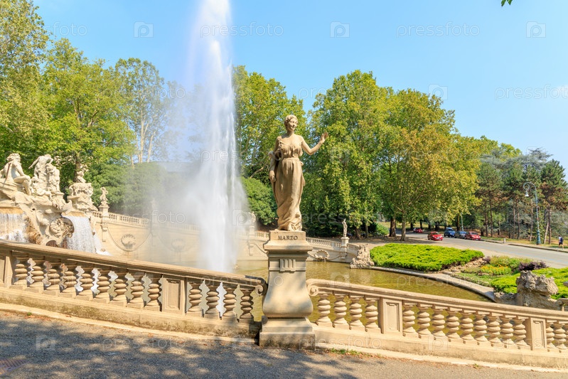 Турин, Италия. Скульптура - МАРТ. Фонтан "12 месяцев". является одним из самых значительных архитектурных произведений парка Валентино. Создано Карло Чеппи (1829 - 1921)