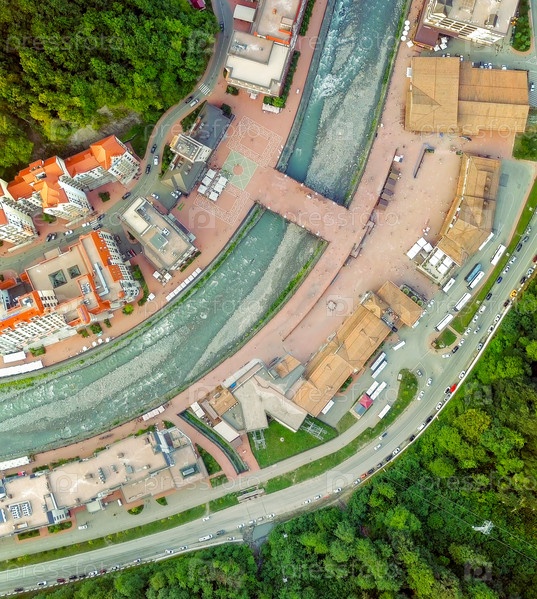 Вид с воздуха. Роза Хутор, Красная Поляна. Сочи, Россия