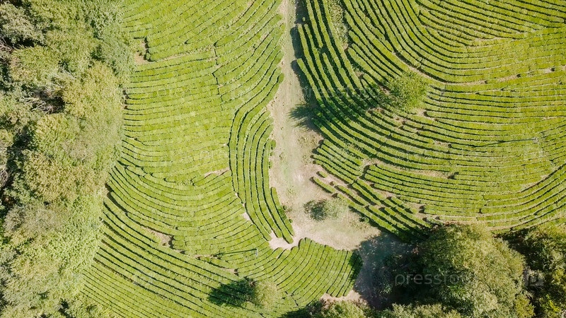 Полет над чайной плантацией. Краснодар, Сочи, Россия