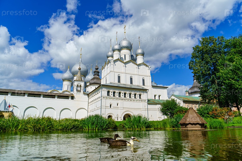 Ростов, Россия. Храм Воскресения Христова в Кремле. Пруд. Ростовский Кремль