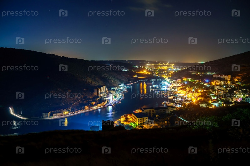 Севастополь, Крым. Балаклавская бухта с лодками ночью