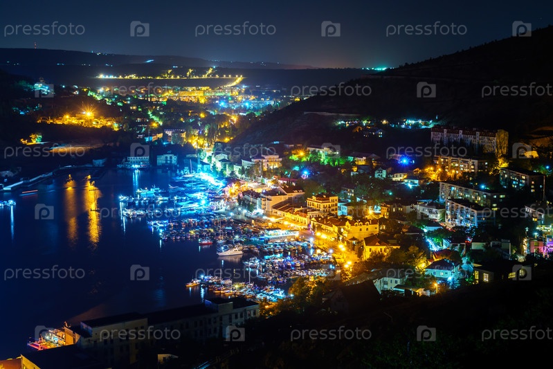 Севастополь, Крым. Балаклавская бухта с лодками ночью