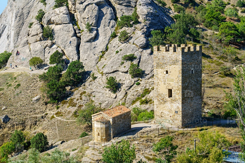 Судак, Крым. Башня Фредерико Астагвера, 1386 г. Генуэзская крепость. Солнечная погода. Черноморское побережье