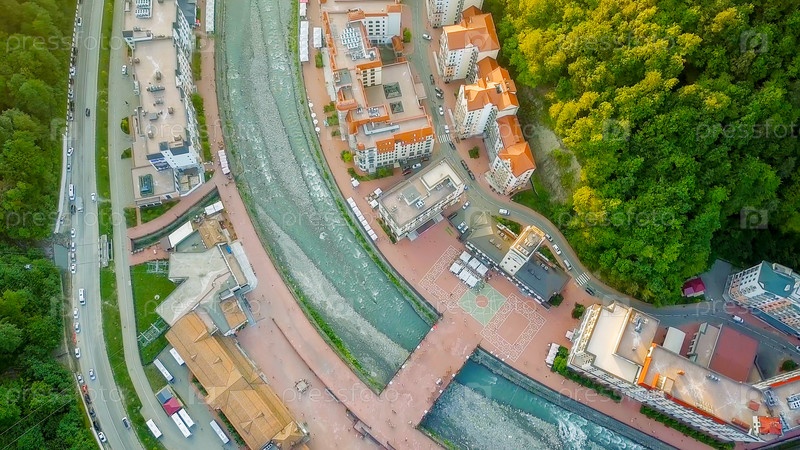 Вид с воздуха. Роза Хутор, Красная Поляна. Сочи, Россия