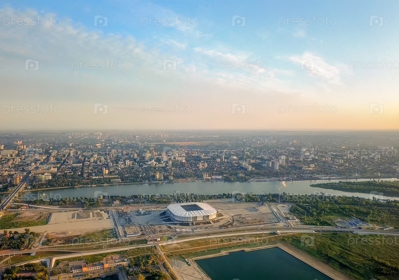 Панорама центральной части Ростова-на-Дону. Стадион, река Дон. Россия, Ростов-на-Дону