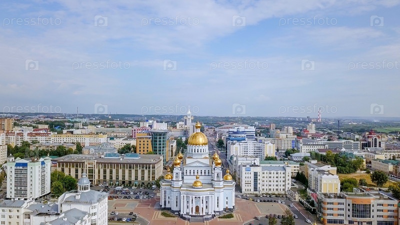 Собор святого благоверного воина Федора Ушакова. Саранск, Россия. Красивый панорамный вид на город