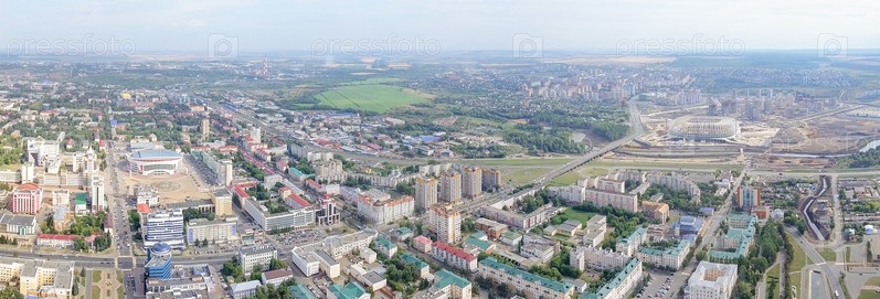Красивый панорамный вид на центр Саранска, а также на строящийся стадион, Россия, Саранск