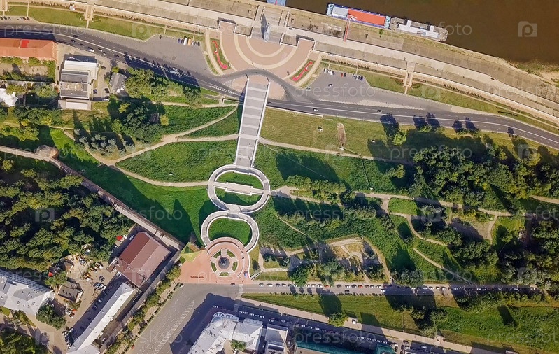 Вид на Нижегородский Кремль и Чкаловскую лестницу. Нижний Новгород, Россия