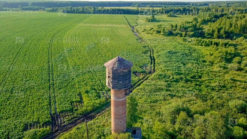 Обходим водонапорную башню. Достопримечательность. Вид на луг и картофельное поле. Общий план