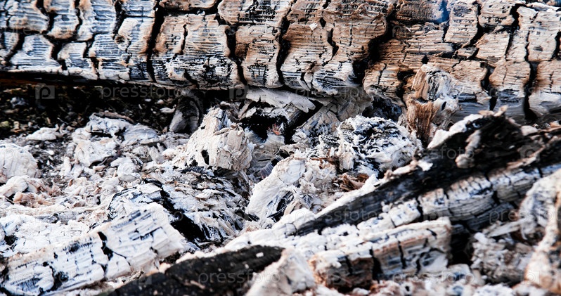 Костер, тлеющие в костре угли. Вечер