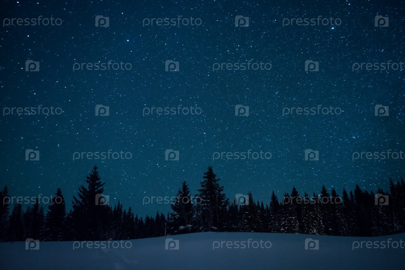 Рождественские елки на фоне звездного зимнего неба