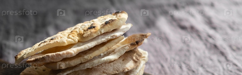 Домашняя маца с микрозеленым горошком. Бездрожжевой лепешка. Концепция празднования Песах. Еврейская Пасха фон. Пита