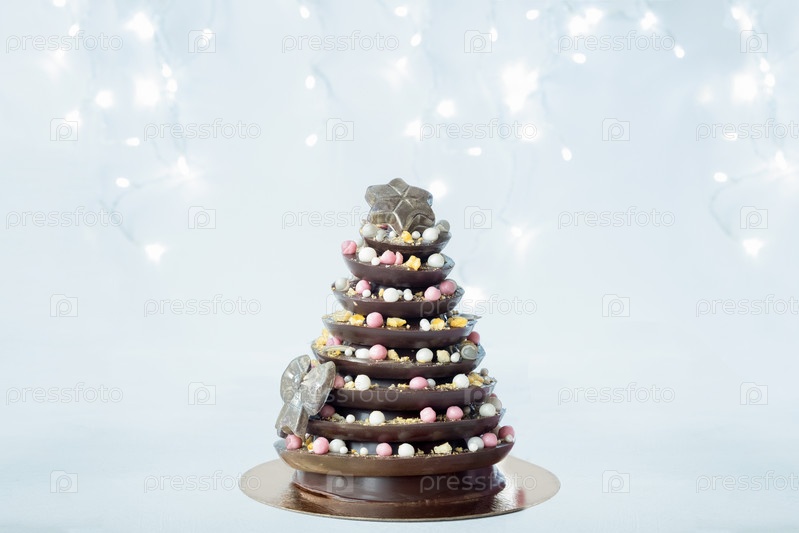 Рождественская елка со съедобными украшениями в коробке. Рождественская еда, домашний шоколадный десерт. Креативные новогодние идеи. Подарок или подарок на Новый год