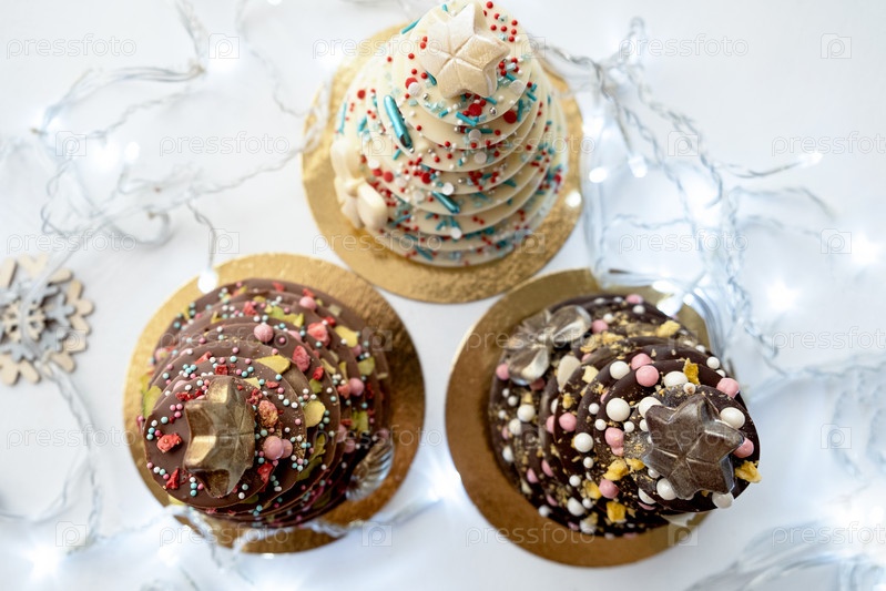 Рождественская елка со съедобными украшениями в коробке. Рождественская еда, домашний шоколадный десерт. Креативные новогодние идеи. Подарок или подарок на Новый год