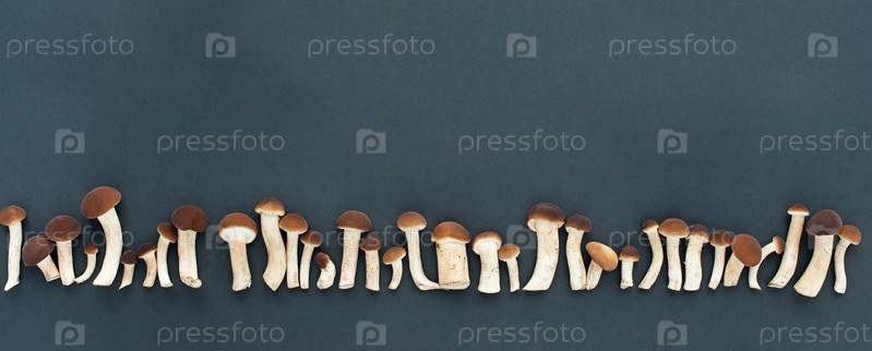 Баннер. грибы, опята на черном фоне. Черная каменная доска. Скопируйте пространство. Шаблон