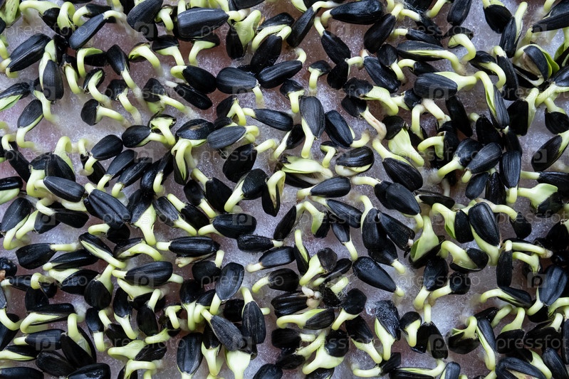 Ростки подсолнуха. пропорциональные семена. здоровая сырая пища, микроэлементы