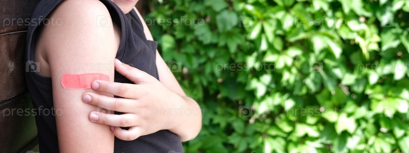 Мальчик привит от коронавирусной инфекции. Вакцинация против ковид-19. Баннер