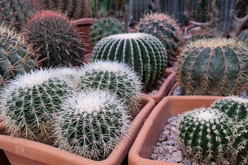 Разнообразие кактусов. Красивый зеленый фон декоративных суккулентов в нейтральных тонах