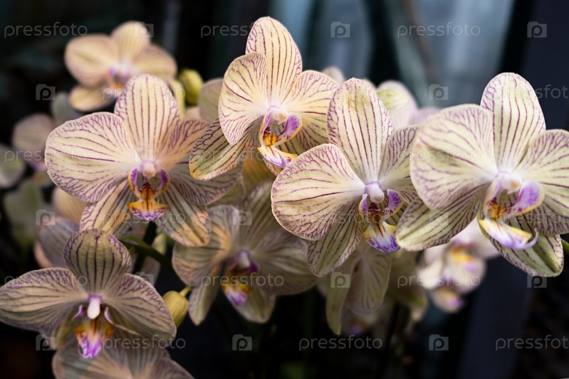 Ветка орхидеи цветет фиолетовыми тропическими цветами