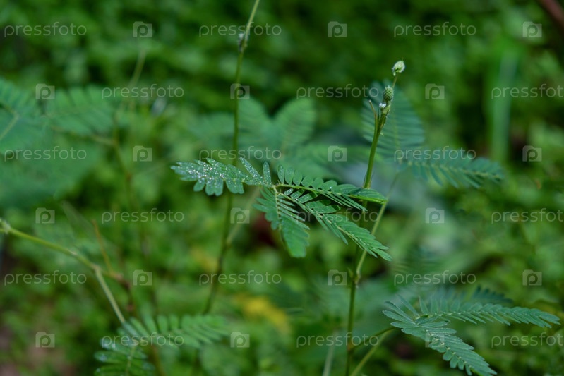 Крупный план чувствительного растения или мимозы стыдливой