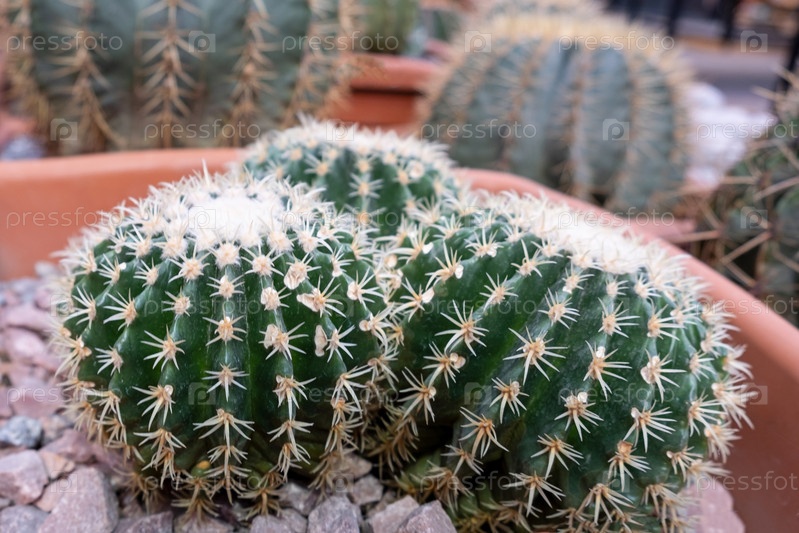 Разнообразие кактусов. Красивый зеленый фон декоративных суккулентов в нейтральных тонах