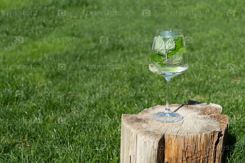 Стекло с листьями мяты и ломтиками лайма