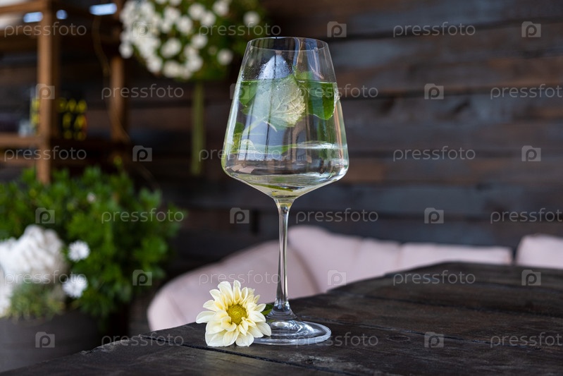 Стекло с листьями мяты и ломтиками лайма