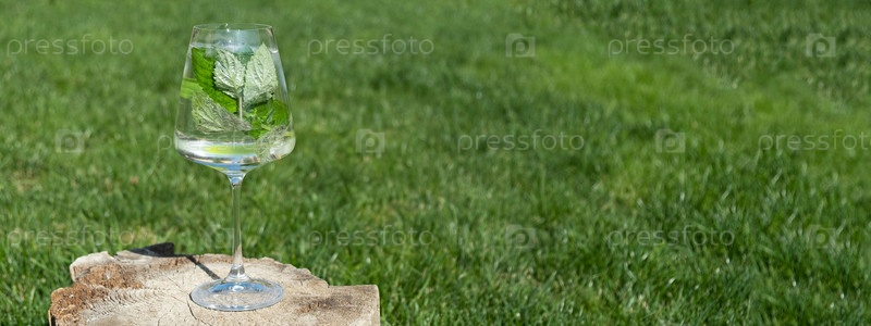 Стекло с листьями мяты и ломтиками лайма