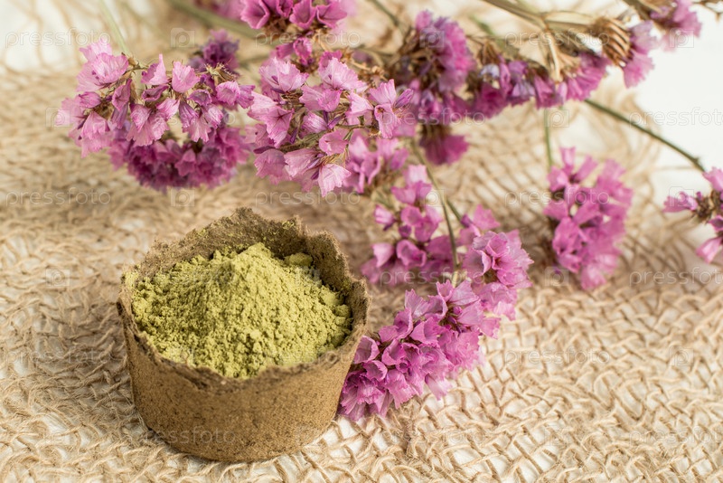 Порошок хны для окрашивания волос и бровей и рисования мехенди на руках, с зеленым пальмовым листом
