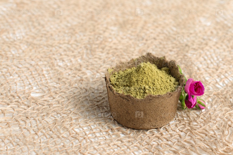 Порошок хны для окрашивания волос и бровей и рисования мехенди на руках, с зеленым пальмовым листом