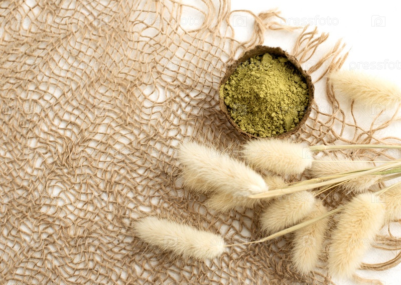 Порошок хны для окрашивания волос и бровей и рисования мехенди на руках, с зеленым пальмовым листом