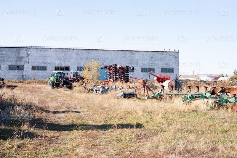 2020 Россия, октябрь. испорченная сельскохозяйственная техника хранится на старом автомобильном кладбище