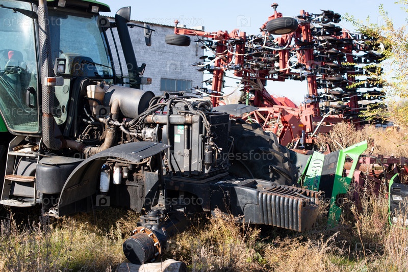 2020 Россия, октябрь. испорченная сельскохозяйственная техника хранится на старом автомобильном кладбище