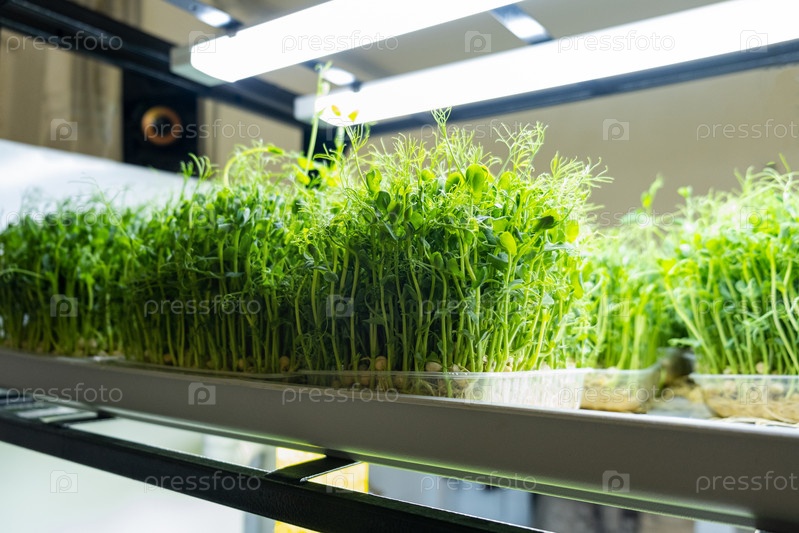 Городская ферма по выращиванию микрозелени. Экологичный малый бизнес. детские листья, фитолампа