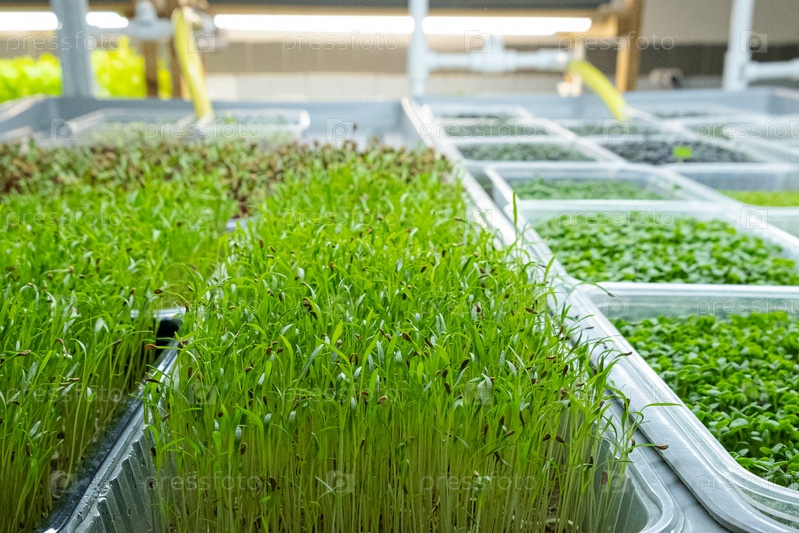 Городская ферма по выращиванию микрозелени. Экологичный малый бизнес. детские листья, фитолампа