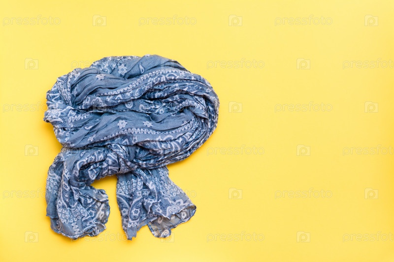 Красиво изогнутый хлопковый шарф на желтом фоне. Весенний наряд