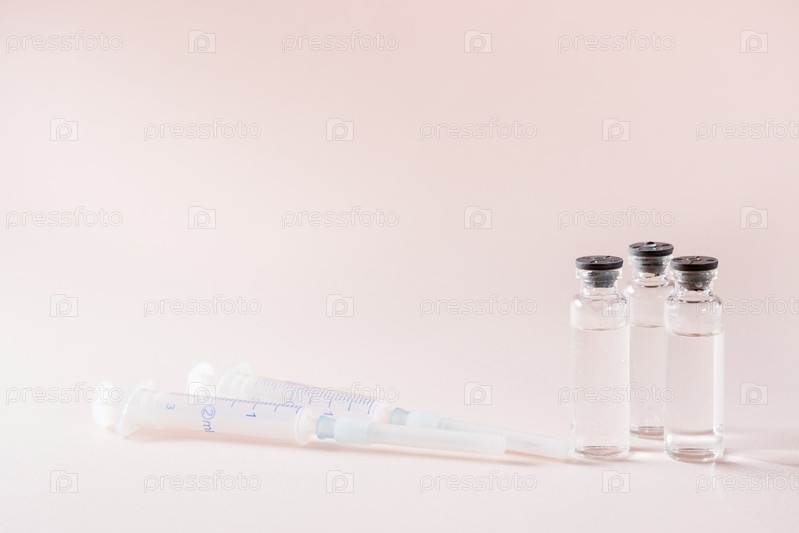 Вакцинация и иммунизация. Флаконы с вакцинами и чистые шприцы