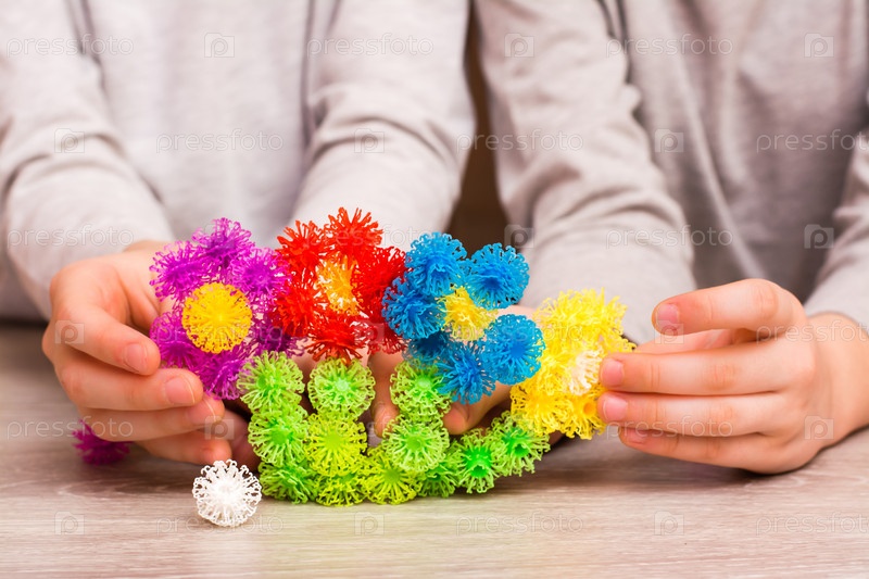 Дети сделали из деталей цветные липкие мозаичные цветы на столе. Досуг ребенка в заключении. Развитие творческих способностей