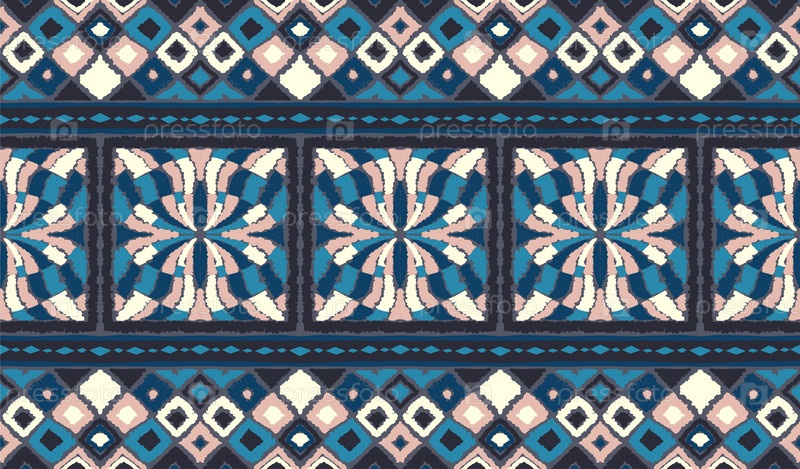 Набор этнических элементов. Бордюр представляет собой полосу с цветами, листьями, ветками, вензелями. Народная вышивка. Славянский, украинский, русский мотив. Хохлома, матрешка, дымковская игрушка. Мексиканский, индийский, цыганский ковер. Вязаное кружево