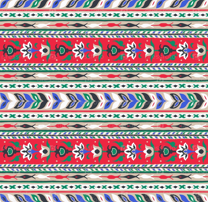 Набор этнических элементов. Бордюр представляет собой полосу с цветами, листьями, ветками, вензелями. Народная вышивка. Славянский, украинский, русский мотив. Хохлома, матрешка, дымковская игрушка. Мексиканский, индийский, цыганский ковер. Вязаное кружево