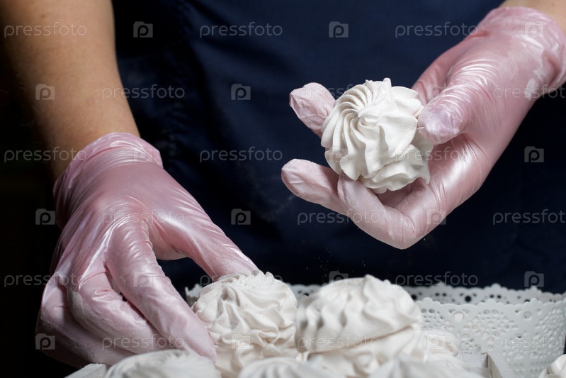 Зефир домашний. Домашний зефир. Женщина кладет готовый зефир на поднос