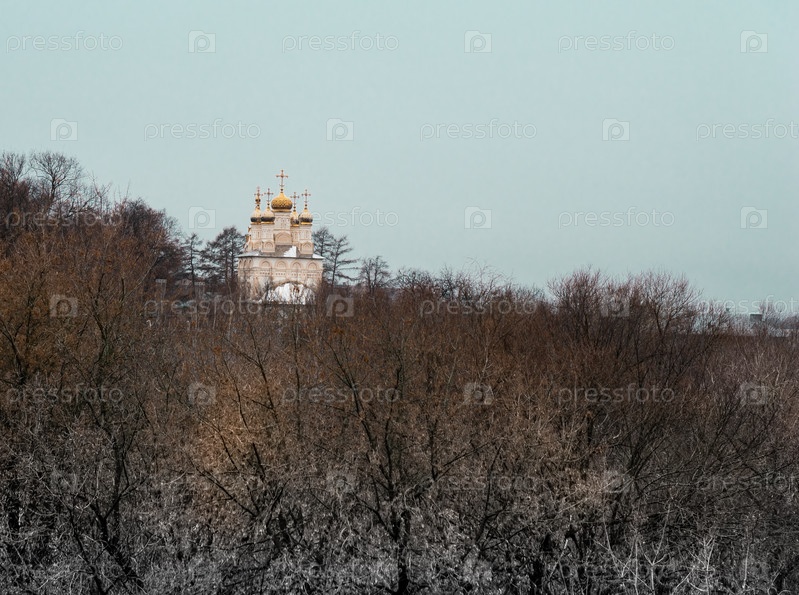 Рязанский Кремль. Острожный холм. Церковь Преображения на Яру. Церковь Спаса Преображения на Яре на фоне осенних деревьев