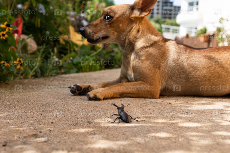 Маленький и большой. Жук-олень нападает на добрую собаку. Смешная сцена. Черногория