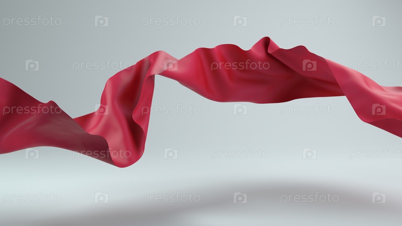Красная атласная ткань, кусок выдуваемой ткани, волна 3d, визуализирована элегантным текстилем