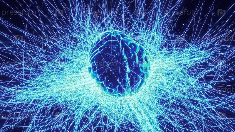 Абстрактная визуализация активности человеческого мозга со следами и частицами